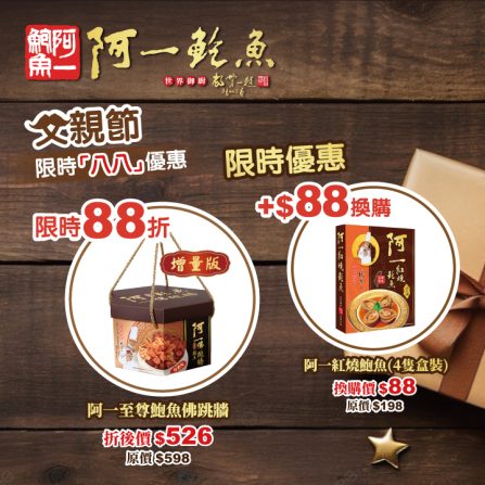 爸爸默默擔起頭家非常辛苦 今個父親節,「阿一」 為您精選兩款殿堂級佳餚,等你可以向爸爸表達最真摯嘅感謝同愛意
